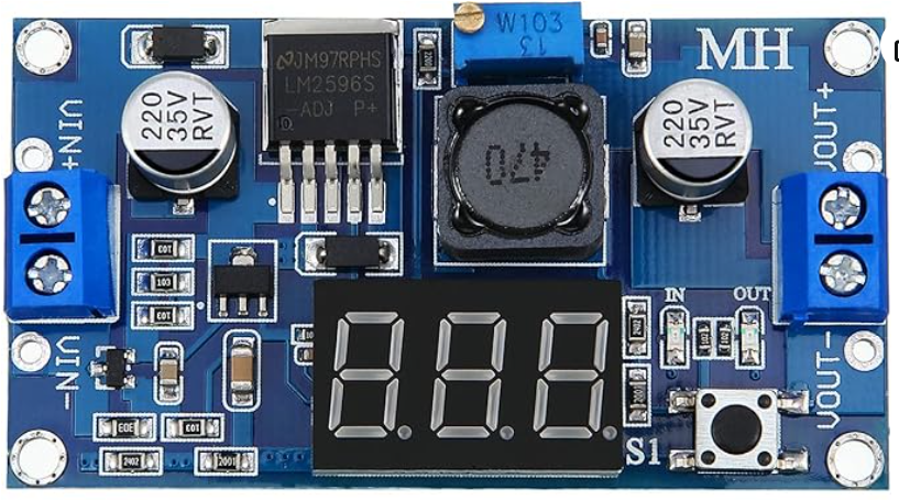 My existing power supply outputs 36V, so I had to integrate a buck converter to step the voltage down from 36V to 24V. The buck converter I used is based on the LM2596 DC-DC model, which I purchased from Amazon for £6.99. Its digital display made voltage adjustment straightforward, allowing me to fine-tune the output to exactly 24V.