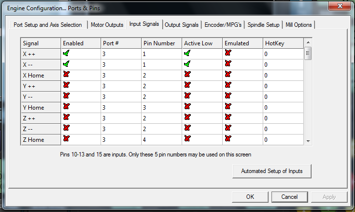 I wired my limit switches as a series of normally closed switches. While this setup doesn’t allow Mach3 to determine which specific axis has been limited, my primary concern is simply stopping the machine when it reaches a limit.